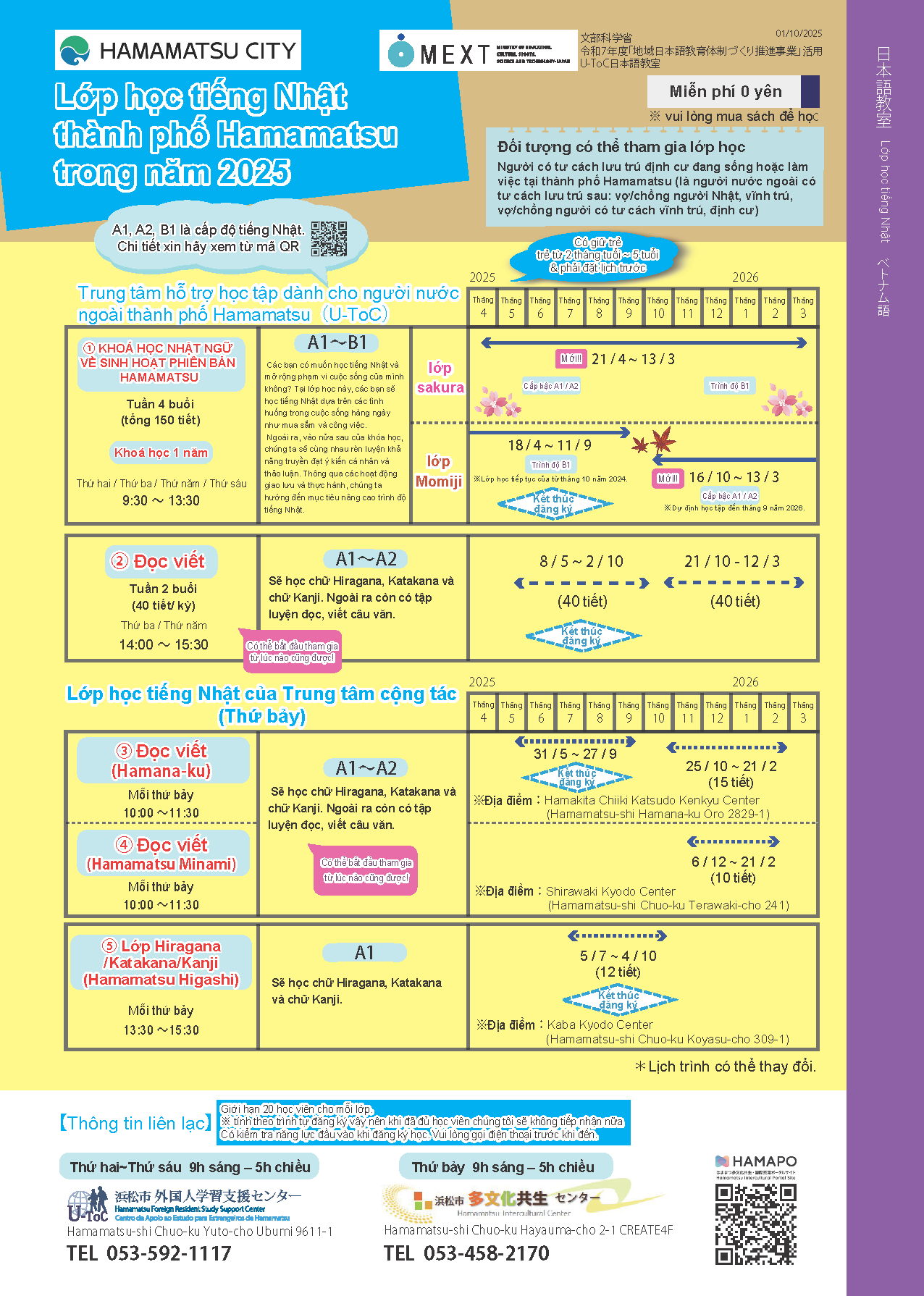 Trang Facebook chính thống của trung tâm hỗ trợ học tập cho người nước ngoài tại thành phố Hamamatsu. Những thông tin mới nhất như là tình hình các lớp học… đang được cập nhật.