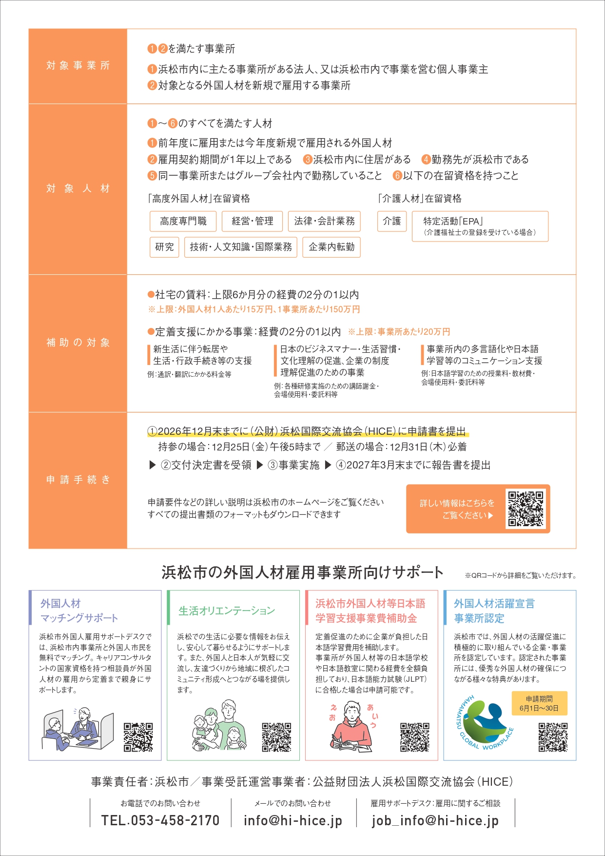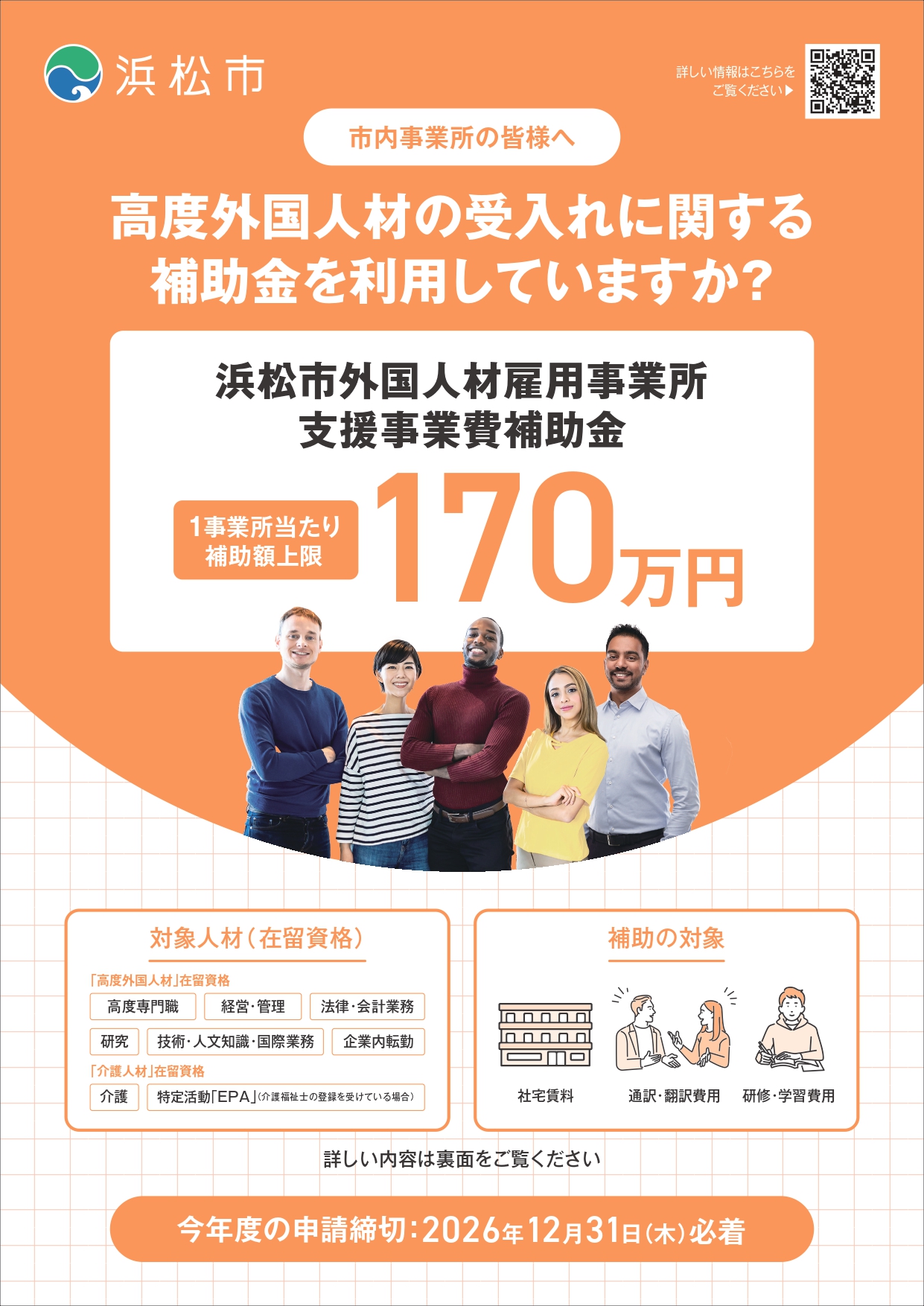 令和8年度版「浜松市外国人材雇用事業所支援事業費補助金」をご活用ください
